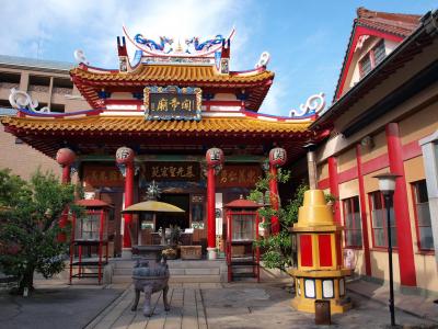 相楽園から徒歩5分ぐらい、住宅街の中に極採色の建物が突然現れます。関帝廟は三国志の英雄である関羽を祀ったお寺で、商売の神様です。横浜の関帝廟に比べると規模は小さめです。参拝自由、有料でお線香を買うことができます。神戸高速鉄道、花隈駅西口からが一番近いです。場所が分かりにくいせいか、タクシーで来ていた観光客が何組かいました。