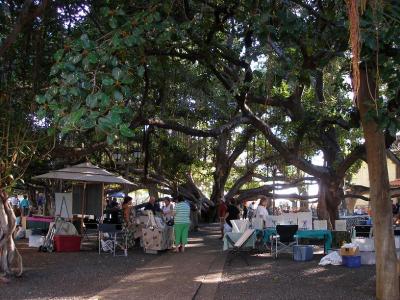 ラハイナのフロントストリートの真ん中ぐらいにあるバニヤンの大樹です。1873年に植えられたもので、高さ約18m、枝分かれした幹は約2700?にも広がっているそうです。大きく広がった樹の下は涼しくて、強い日差しを避け、ラハイナの史跡巡りや、ショッピングの合間にひと休みしている人達がいっぱいいます。週末にはフリーマーケットも行われ、手作りの絵や木彫りなどの美術品を売る人でいっぱいです。また、クリスマスシーズンにはライトアップされるそうです。コートハウスを挟んでラハイナ港があり、休憩をするには気持ちのいい場所です。