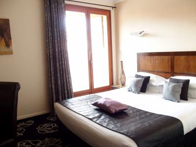 中心地と駅の間の坂を上った途中にあるホテルです。ホテルまでは坂なこととエレベーターがないので(これはホテル案内に記載してあったので承知)、大きな荷物だとちょっと大変です。ですが行って知ったことは(日本式で言うと)1階から2階へは螺旋階段になっており荷物を持っての上がり降りは普通の階段と違ってもっと大変ということでした。それ以外の点ではポットやティーセットもあり清潔ですし、部屋にはバルコニーもありました。利用しませんでしたがプール(時期的に使用できなかったと思います)やジャグジーもあるみたいです。中心地まですぐなので便利な立地でした。