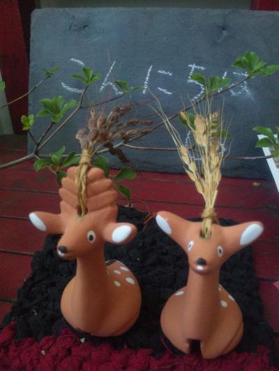 鹿雑貨のお店「ジュエヌ」へ。鹿プロ−チ、鹿ハンガー、鍋しか(鍋敷き!)...
