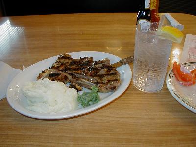 ケーブシティにあるこの店はこの辺りのチェーン店だそうです。Tマンモスケーブ国立公園のゲートシティとして使えるこの町は、モーテルの周りに数軒のレストランがありますが、ファミレス感覚で入りやすいのでおすすめです。ボーンステーキとサラダとラムネードで約$10.なかなかおいしかったです。