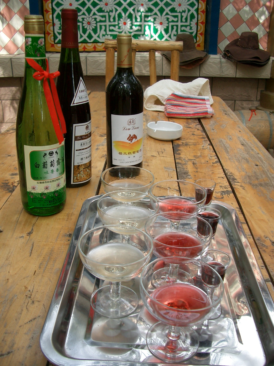 吐魯番にはカレーズ民俗園が2カ所あるそうです。 私が行ったのは古い方のカレーズですが、こちらではワインのテイスティングができるようになっています。 ガイドさんに案内されたのですが、入口を入って右側にワインの店があります。 元々はおみやげなど販売用ですが、テイスティングだけでも快く受け入れてくれました。 ワインは日本の物と違って比較的甘めですが、私は今までこのような味の物は飲んだことがありませんでした。 甘めのワインが好きな方はぜひ試してみてください。