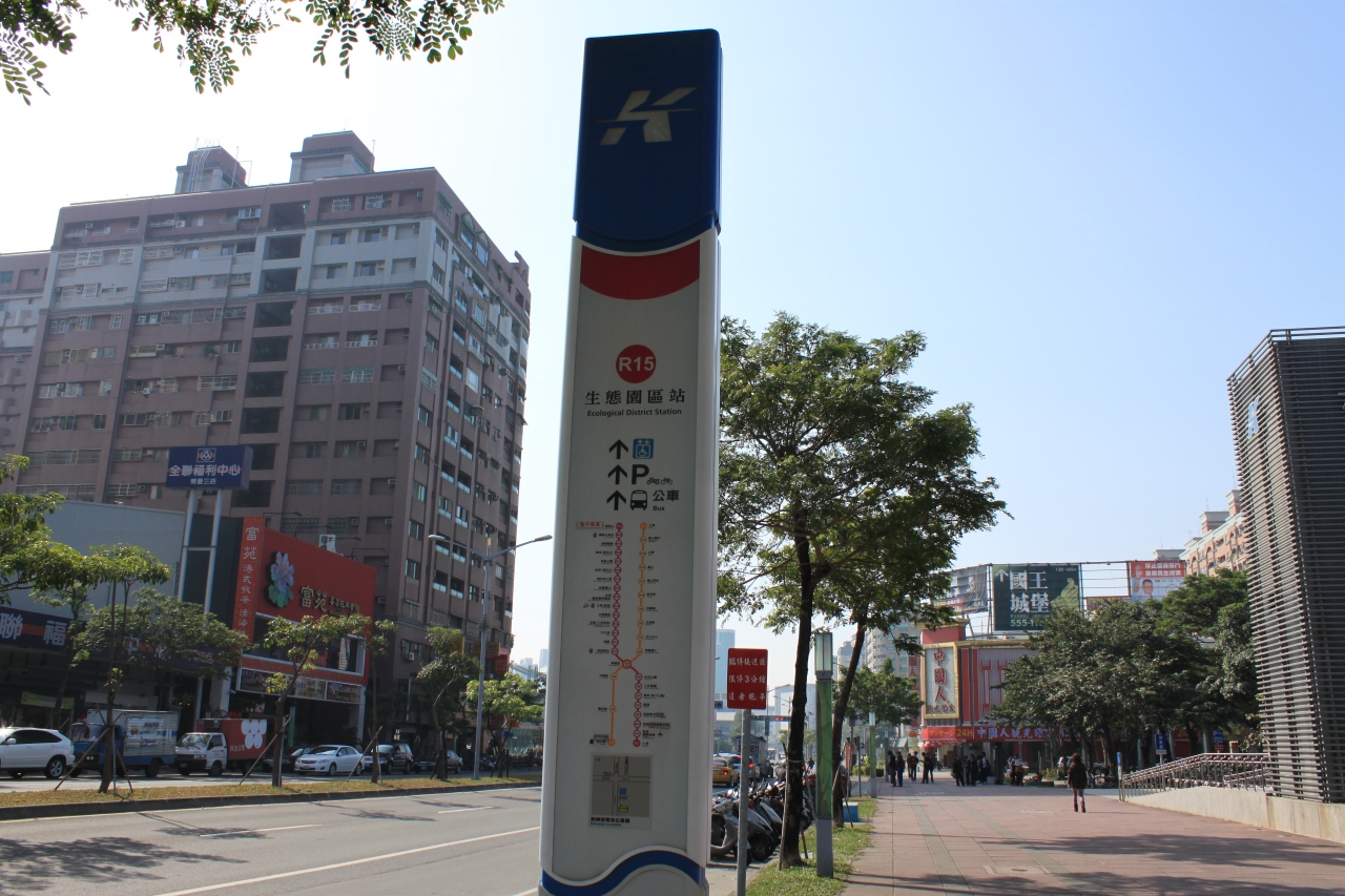 高速鉄道で高雄(左營)駅に到着したら、ガイドブック通りに行くとまずMRTに乗り換え、隣駅の生態圏區(Ecological District)駅に向かうと書いてあります。