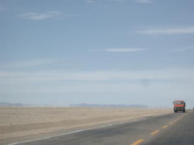 敦煌の市内中心部から敦煌駅までは130kmというかなりの距離があります。 市内で突然タクシーを捕まえて行くのは難しいかもしれないので、前もってホテルや旅行会社で手配をしておくことをおすすめします。 ちなみに私の場合3人で300元でしたが、人数によって変動もしますので確認しましょう。 所要時間は約1時間半といったところです。 何もない砂漠の中をひたすら走りますが、途中で蜃気楼も見えました。