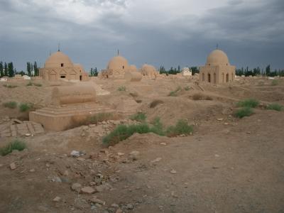 ここは中国?と思わせる物が多いウイグル自治区ですが、ウイグル人はイスラム教徒で、漢民族とは違い食事も生活習慣も違うようです。 ガイドさんが見せてくれたのは、ウイグル人のお墓でした。 道の途中にあった物ですが、お墓も墓石のような物からモスクのようなものまでさまざまでした。 お金がある人ほど立派な物を作るそうです。 今でも土葬で行われているそうです。