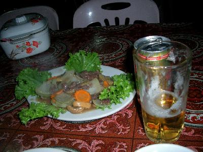 シュムリアップの街中にある「ジャパニーズ・レストラン」と言うところに行きました。 名前はジャパニーズですが、扱っている物はローカルフードで、ステーキ?らしき物を頼みましたが、結構おいしかったです。 「AKIRA」という日本人のNGOの方が経営しているレストランらしく、それほど高くは感じませんでした。
