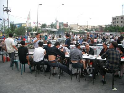 吐魯番の街中ではウイグル(イスラム)料理をよく見かけます。 レストランは分かりませんが、地元の人が行くローカルレストランのような屋台がメインストリートである高昌路沿いにあります。 広場のような所に夕方になると露店が出てきて、たくさんのテーブルが並びます。 地元の人で賑わっているので、行けばすぐに分かると思います。 ウイグル料理は基本的に羊を使う物が多く、私にはちょっと厳しかったのですが、一緒に行った友人はおいしいと言っていました。 一皿10元も出したら腹一杯食べられると思いますので、興味のある方は試してみたらいかがでしょう?