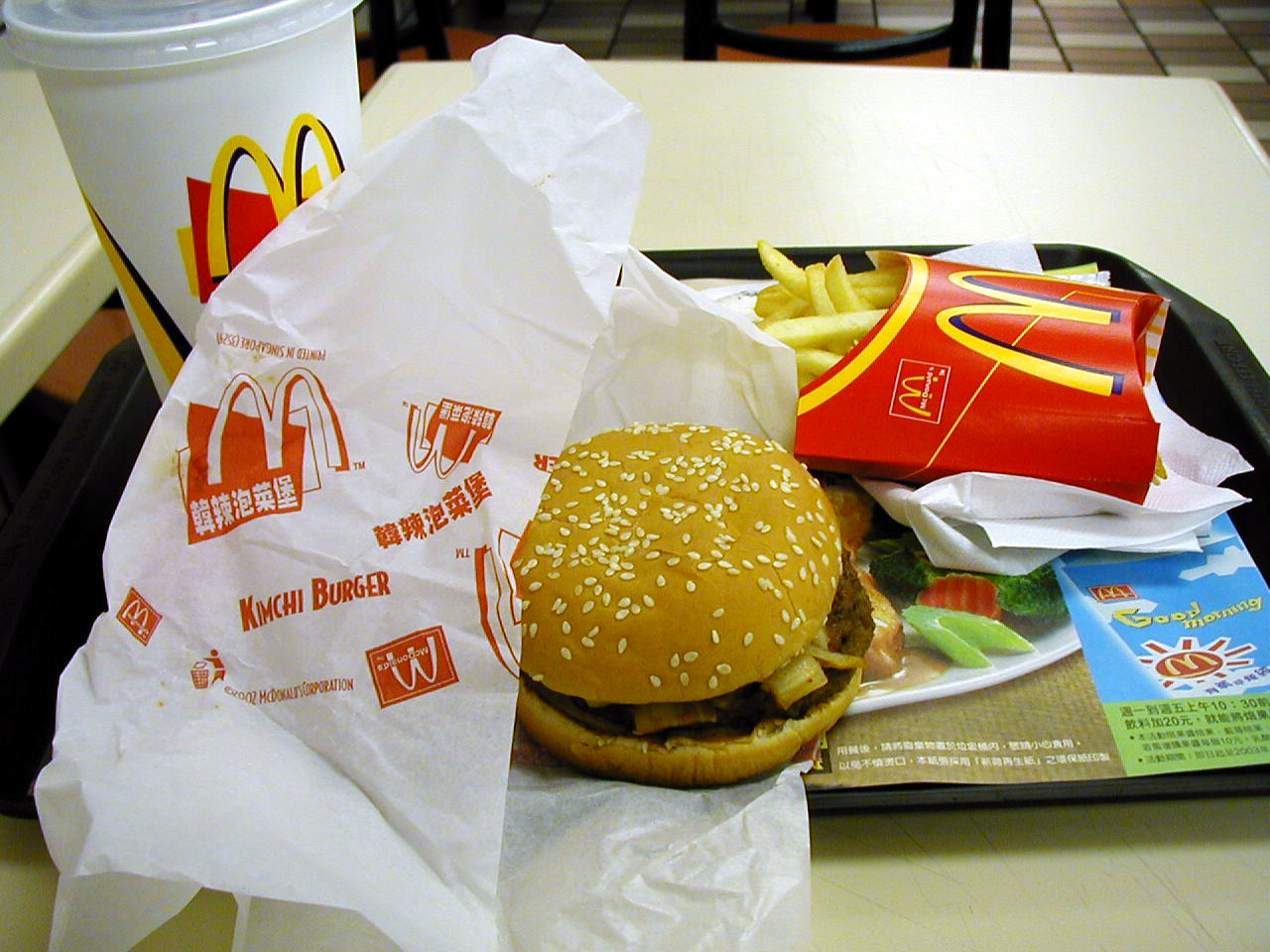 どこに行ってもと言っていいほどマクドナルドは世界で多く見かけられますが、その中でここ台湾の珍メニュー?は「キムチバーガー」です。なぜ、韓国ではないここなのかはよく分かりませんが、とりあえず食べてみました。確かにキムチは入っている物の、ちっとも辛くなく特に特徴はありませんでした。