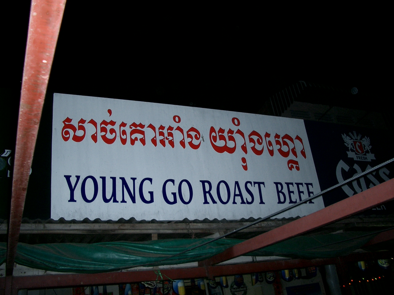 王宮裏側にある焼肉レストランへ連れて行ってもらいました。 カンボジアでも牛肉を食べられる焼き肉料理店は見かけます。 カンボジアの庶民的な料理ではないのですが、結構混み合っていました。 牛肉の他にも豚や鳥、貝類などもあり、BBQ的な感じを受けました。 料金的にはごちそうになってしまったので詳細は分かりませんが、それほど高くはなさそうでした。