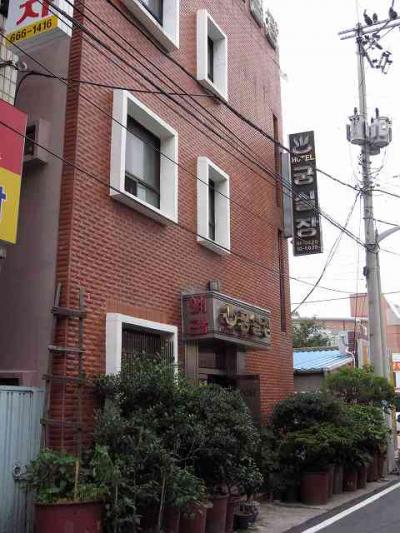 麗水駅から徒歩5分くらいの所にある「グンシルジャン」です。 旧市街には古い宿がたくさん点在しますが、どこも寂れた感じのところが多く、私は週末の夕方に到着しましたが、予約なしに全然余裕で泊まることができました。 特にここに決めていたわけではありませんが、歩いていたら声をかけられて、面倒だったので泊まることにしました。 料金は1人部屋でW25,000でしたが、部屋は古くさく、バスタブは付いている物の、お湯が出ないといった感じでした。 安宿にはありがちかもしれませんが、夏でよかったです。 麗水駅から大通りを港方向に向かって進み、数本先の路地を右に入ったところにあります。 このほかにもたくさんあるので、参考程度にしてください。 あまりおすすめではありません。