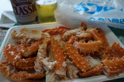 発送用と、ホテルの部屋飲み用でイバラガニという深海蟹を食べやすく捌いてもらえた。- 旅行時期