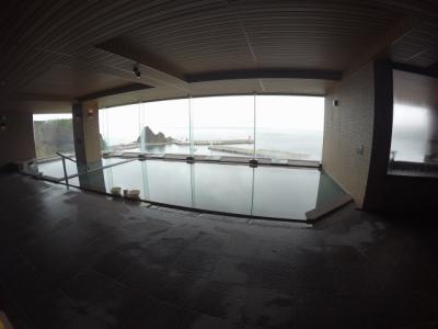 内風呂は翡翠敷き詰めでキレイだけれども床が滑りやすそう。女性用露天は油断してポヤーっとしていれば近隣住宅から丸見えかも。