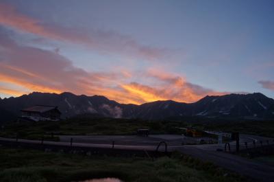 立山黒部アルペンルートを、立山(富山側)から扇沢(長野側)へ横断する途中で一泊いしました。場所は、アルペンルートの高原バスで、室堂の一つ手前の天狗平バス停の目の前です。翌朝は、山荘から室堂まで、山荘の車で送ってもらえました。