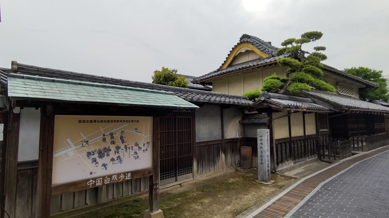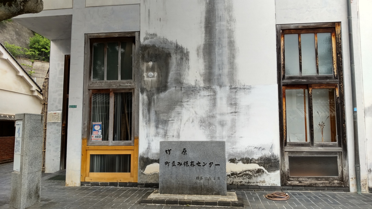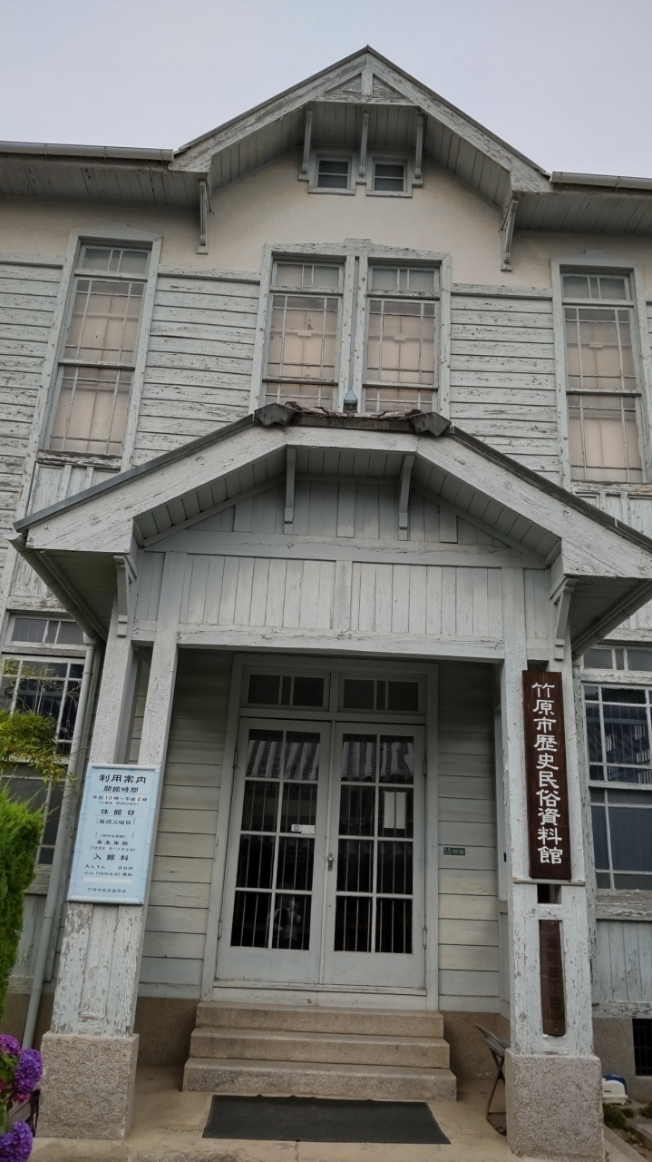 和風建築が続く街中に2階建ての古い洋館が現れる。和風建築に部分的に洋風建築が取り入れられた建物ではなく、一棟全て洋式で建築された当時は現在よりもかなり目立つ存在だっただろう。用途は変遷しながらも今日まで継承され、竹原の街並みを形成する重要な建造物になっていて、現在は竹原市の歴史民俗資料館になっていて、制約はあるが建物内部も見学可能だ。
