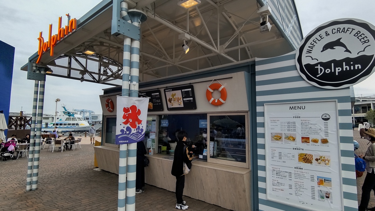 シーパラはかいけつゾロリとのコラボイベントなどで集客できているようであるが、アルコール飲料を提供するドルフィンのメニューは特に刷新されてなく、待ち列もなく適度に捌いている状況。