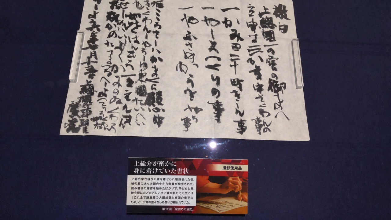 鎌倉には当時の面影がそのまま残る史跡は少なく、鎌倉では撮影されていないながら、御所の再現についての動画解説と主な出演者のサイン色紙のメッセージなどを楽しめる。