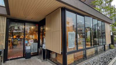 江ノ電鎌倉駅側の御成町に2022年春にオープンしたばかりのホテルだ。最新のコンセプトで、自然に調和するよう壁面を緑化したり景観に配慮された外観で、エントランスの植栽も独特な雰囲気だ。1階は植栽に囲まれたガラス張りのレストランで良い感じだ。