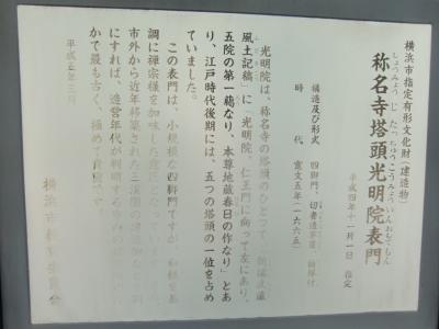 横浜市金沢区の称名寺参道の途中の左手にある、平成4年に横浜市が指定した有形文化財(建造物)の切妻造、茅葺、袖塀付の四脚門である。小規模な門であり、開け閉めや、通り抜けはできないが、独特の趣がある。称名寺参詣時、金沢文庫入館時は、合わせて鑑賞したい。