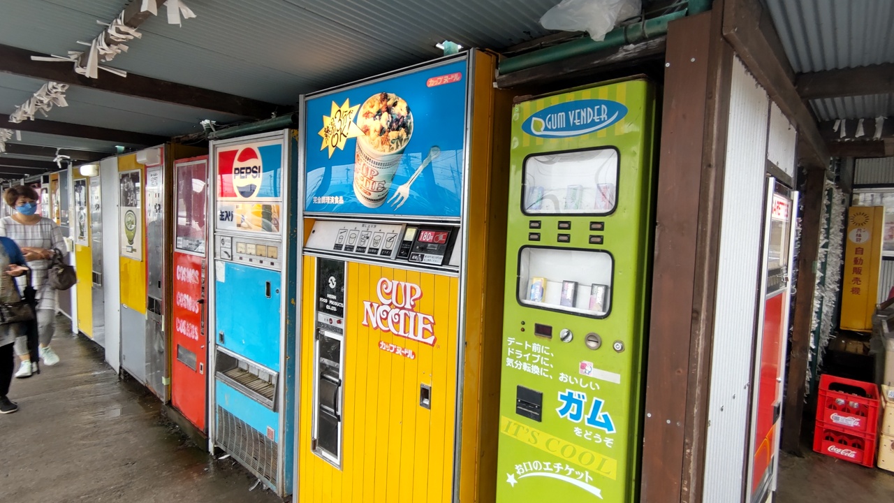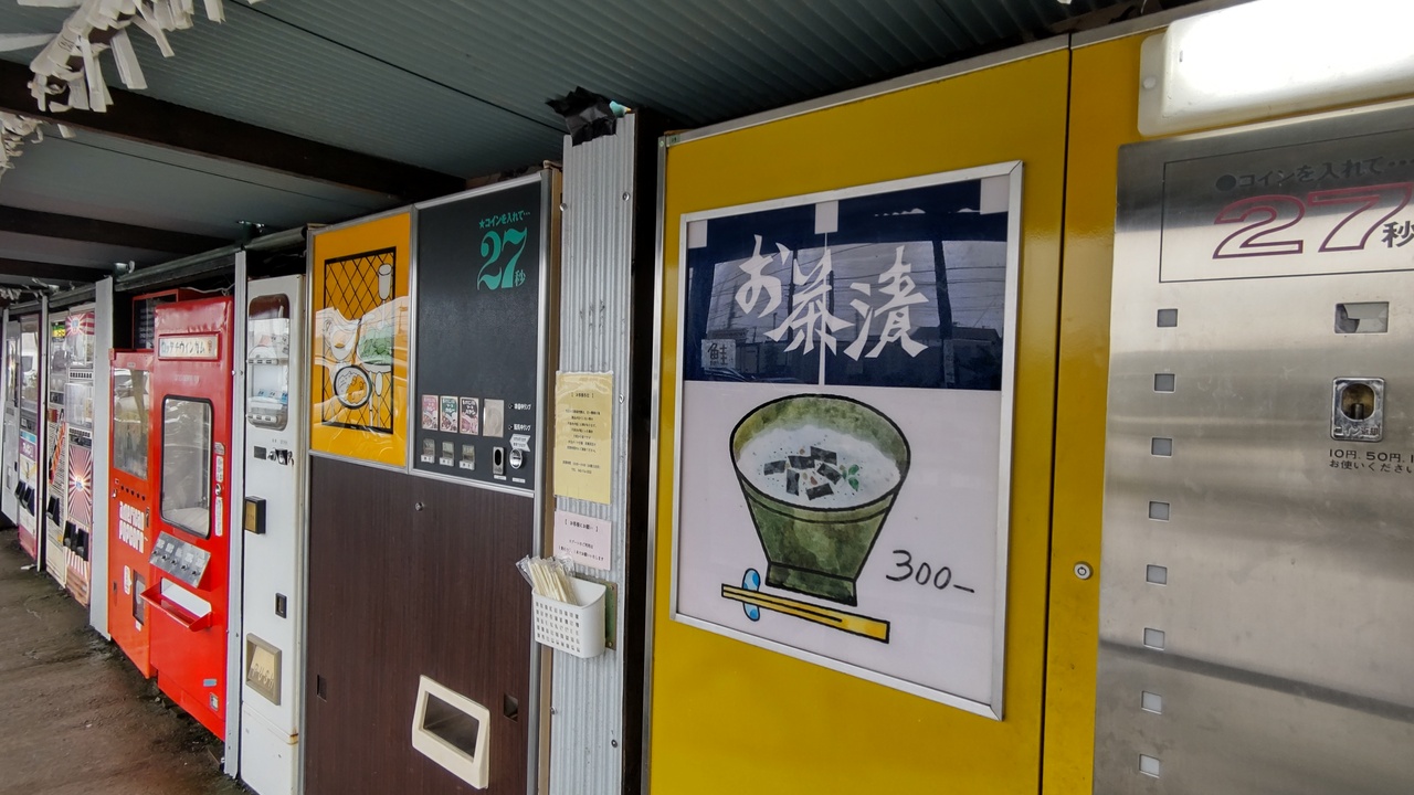 マスメディアに多数取り上げられ有名なスポットで、昭和の自販機がずらりと並び、ほぼ全て稼働している。瓶入飲料など商品も珍しいが、そば・うどんやハンバーガーなど仕込みに手間の掛かる自販機が多数維持されていて、なかなか賑わっている。