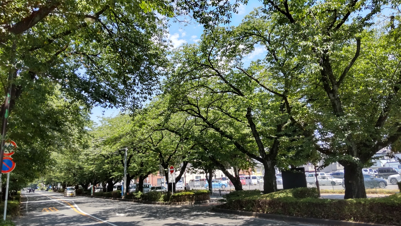 染井吉野の並木が茂りトンネルの様に良く育っていて管理が行き届いているようだ。片側1車線の道路なのだが、街路樹の両側に側道があり、駐車可能な場所もある。側道の外側に歩道があり、桜の街路樹の外側に欅の街路樹がある箇所も。