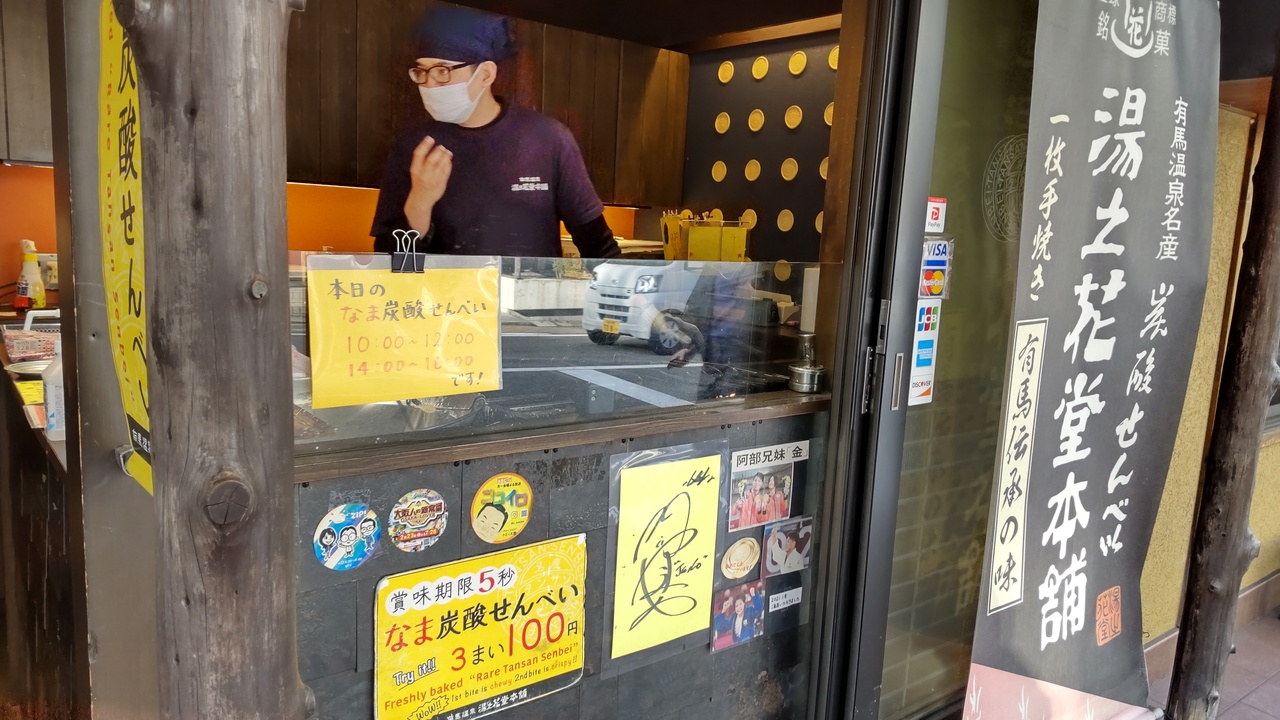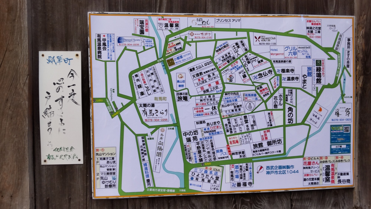 阪急バスターミナルの先を左手に金の湯方面に登る坂が有馬温泉の古くからの中心街道で、沿道や周辺に源泉や宿に加えて商店がずらりならんで賑やかだ。観光スポットも多く、ゆっくり観てまわるには何日間も必要な圧巻的な数だ。