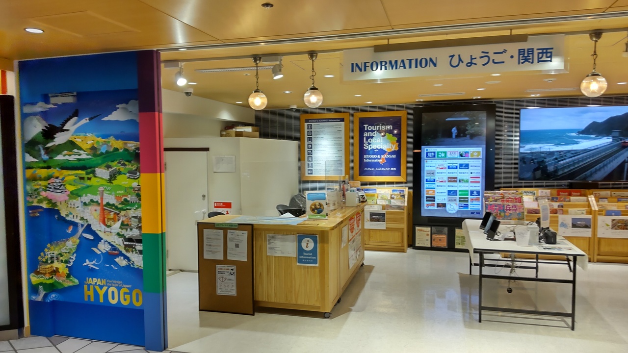 伊丹空港の旅客ターミナルは大阪府豊中市に立地するが豊中空港とは呼ばれずに、滑走路など空港として大半の面積を占める伊丹の地名を冠している。大阪空港との名称も使われているため伊丹市は大阪府と勘違いしやすいが兵庫県であり、府県境を跨いだややこしい立地なのである。昨年度までに数年続いた大規模リニューアルが完了し、明るく華やかになった。ターミナル出口正面に大阪の案内所があり、その裏手に兵庫県の観光案内ブースもある。