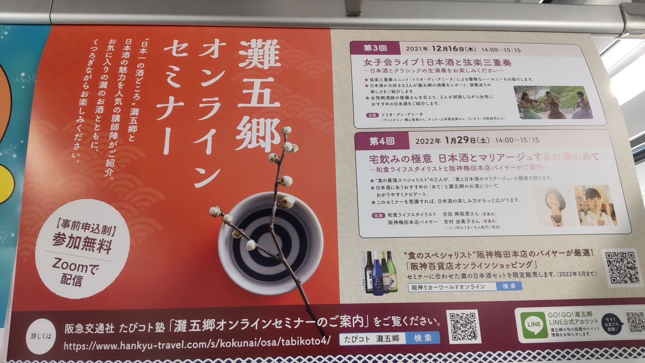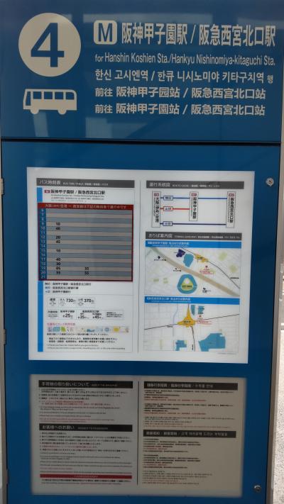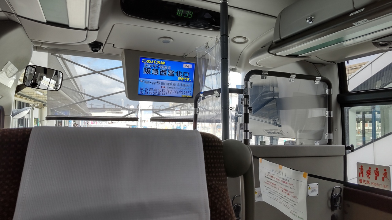 伊丹空港から灘五郷の阪神電車の最寄駅へは、大阪モノレールから阪急に乗り継ぎ、更に阪急と阪神は乗り継ぎが不便。阪急今津線は宝塚方面から阪神本線の今津駅には直通運転してなく、乗換回数は梅田駅や三宮駅で乗り換えるよりも増え、慣れない経路を荷物があると難儀。空港の案内書に最適ルートを尋ねると、思いもよらない阪神甲子園駅経由西宮駅の直通高速バスを提案されたので利用した。指定席ではないが、空港で乗車券を事前購入でき、支払い方法も選べて便利だ。