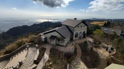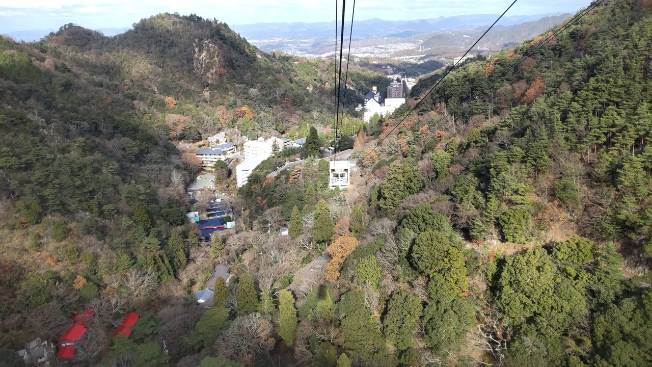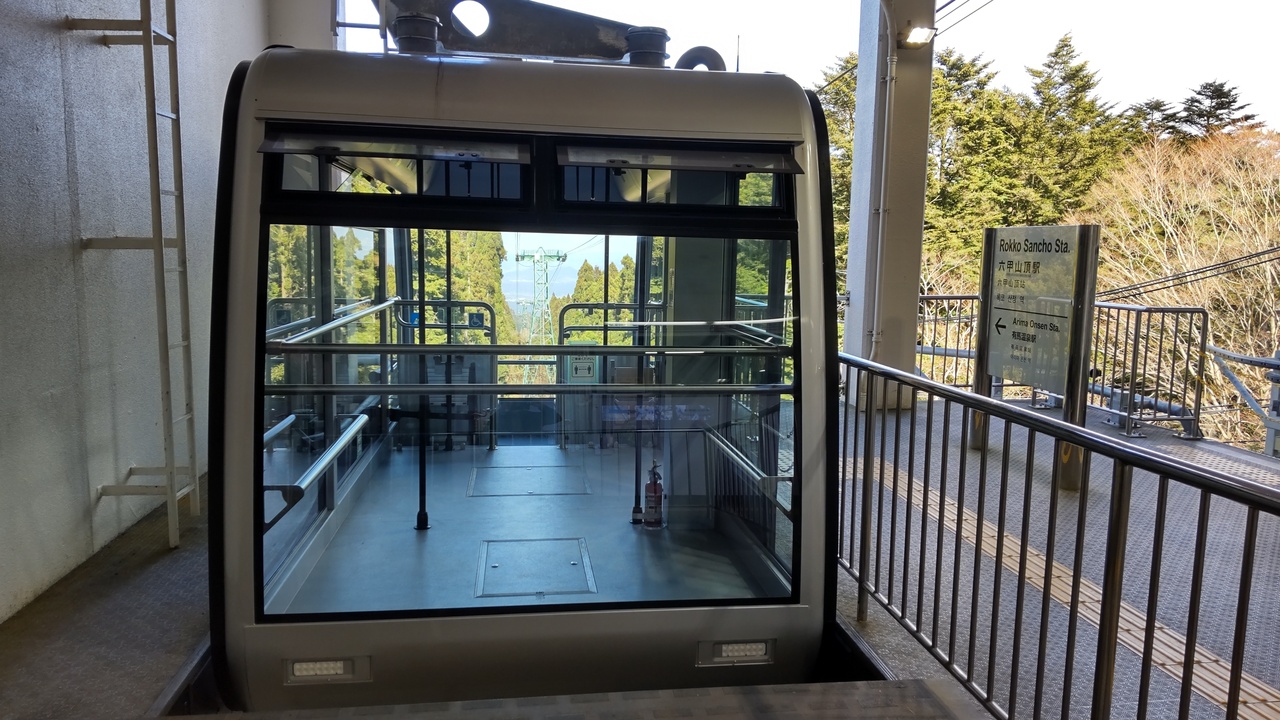 長年乗ってみたかった有馬温泉の上部から設置された六甲有馬ロープウェイにようやく乗る機会を得た。ちょうど昨年春に更新したばかりのスイスCWA社製の最新搬器は、麓側が床面付近まで全面ガラス張りで、しかも1列座席まであり、座ってゆったり次々移り変わる絶景を味わえる。車掌さんのライブ解説も絶妙で、六甲有馬ロープウェイや六甲山について学習できる。着席はタイミング次第だが、運良く往復座れた上、快晴にも恵まれた。