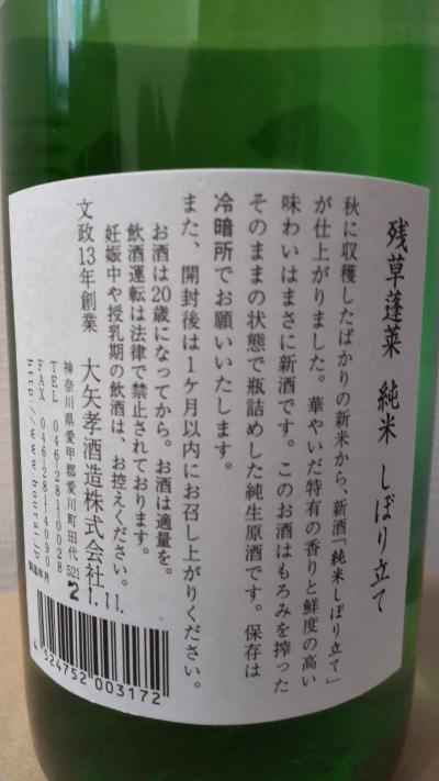 すでに来週には残草蓬莱しぼりたて黒の出荷がアナウンスされていて、既に上槽を終えていて、週明けに瓶詰めのようだ。