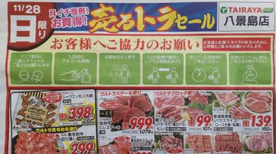 今月も最終日曜日となり、タイラヤの売るトラセールが開催され、天候にも恵まれ師走前に盛況だった。コロナ禍で中止された時期もあったが、チラシも復活、定例の大サービス価格も継続し有り難い。裏手に駐車場があるが、使用できる場所が限られ、幅がやや狭いので要注意である。