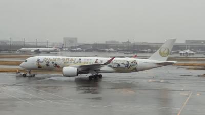 国内線出発ターミナルから「がんばろう日本!塗装機」をパチリ。生憎の雨天、ガラス窓越しの乱暴な撮影だが、行き先及び週明けまで天候は良い予報、気になる終わった東京2020の収支決算やコロナ禍で積み上がる借金財政の後始末を連想させる塗装だが、次の五輪まで失敗を風化させない警鐘として使うの?五輪精神を利用する向きからすると失敗という認識では無いかもしれぬが、がんばろう日本って誰が頑張るの?選手と関係者だけじゃ無いよね。組織委員会、愛好家は自利益のため頑張ってるだろうけど納税、予算執行、消費活動頑張ろうかな。って塗装が悪天候でよく見えないが冬季五輪だったの?