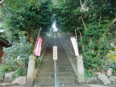 熊野三社大権現の鳥居の先にある参道の階段はかなりの迫力であり、階段を登るのはたいへんである。奥手にいは急斜面だが車道も整備されている。
