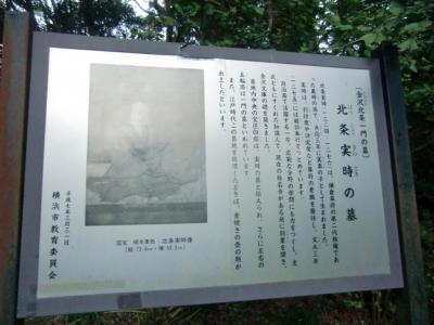 背の高い夏草が生い茂る蒸し暑い状況では歩くのは心地良く無いが、これから涼しくなると歩きやすい。御陵前には解説板が設けられている。御陵前から左右に称名寺市民の森の散策路が分かれいる。右手に日向山、左手が稲荷山を経由して金沢山・八角堂、さらに金沢文庫駅方面へと続いているようだが、まだ行ったことはない。御陵の背後の尾根を越えたところに称名寺市民の森の境界があり、西柴住宅街に隣接している。- 旅行時期