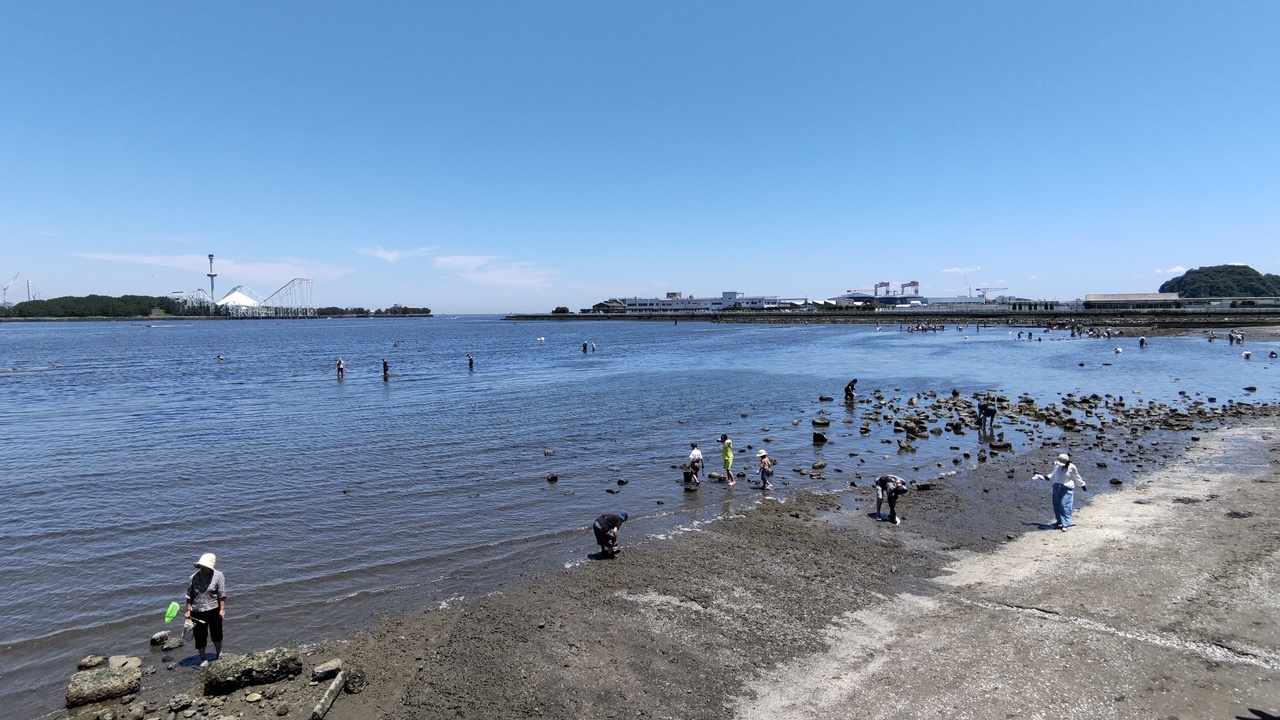 水無月と言えばあじさいのシーズン、横浜金沢八景島シーパラダイスでは第23回金沢八景島あじさい祭が開催されているが、金沢湾対岸の野島公園のあじさいも見ごろ。野島海岸線沿いや野球グランド沿いなどに植えられている。干潮時はあさりやマテ貝などを潮干狩りする強者が多数。