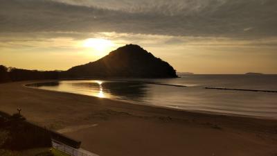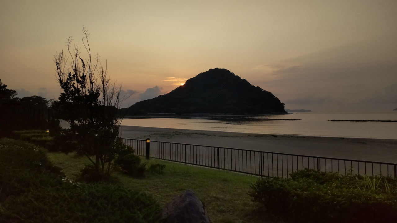 日本海の美しい菊ヶ浜越しに指月山の夕陽や萩6島の名勝を部屋から望む絶景宿