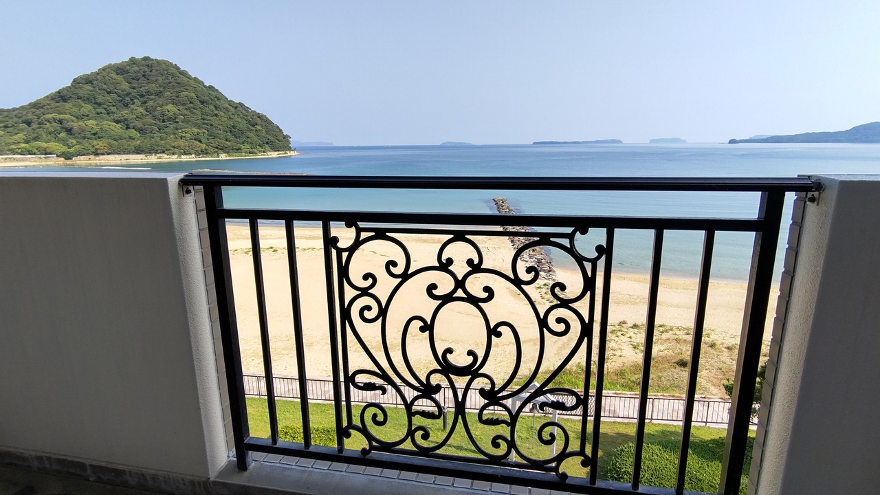 約30年振りの萩訪問にチョイスした優れたオーシャンビューを独占できるロケーションに建つ地元企業が渾身運営する中規模ホテル。国指定天然記念物の天然要塞、標高143mの名勝「指月山」を、陸繋島の菊ヶ浜の日本海の透き通る渚と一体で鑑賞することができます。また、日本ジオパーク46の1つとして活動している地域の特徴である火山島である萩6島の遠望を、天候や天体の活動、行き交う漁船、漁火や離島からの渡船などの人類の活動とともに存分に味わえます。