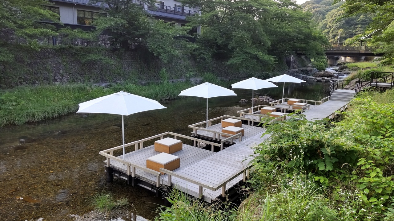 地域に根ざす展開を全国的に拡大している和風温泉宿泊施設の星野リゾート界長門は音信川沿いにあり、川岸に川床テラスも整備して長門市の湯本温泉の活性化に重要な役割りを担っている。黒色に統一された外観、地元の和紙を使った内装など注目を引くところ。九州からのアクセスも良い。