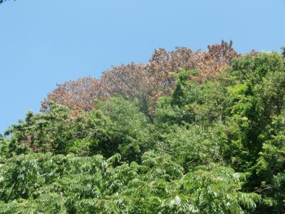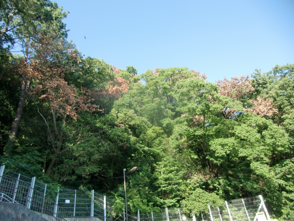 山頂駅上の展望台は涼しく快適で、360度の展望を楽しめる。周辺の散策路は木々や地形に阻まれ展望は限られる。