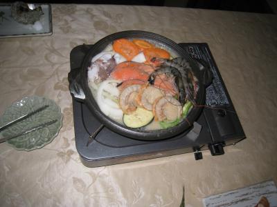 夕食時にちょんまげの宿主が全テーブルにあいさつに来てくれました。