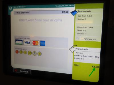 11回目のメトロ乗車、あらかじめ買った枚数は10枚だったので、券売機で...