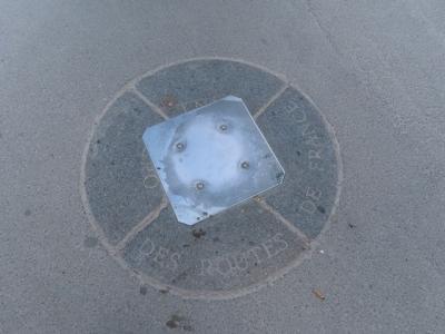 寺院の前にあるポワン・ゼロ・デ・ルート・ド・フランス。道路元標で、パリ...