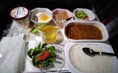 私は一番後ろの座席だったので、機内食は希望の物が残っていないかもと覚悟...