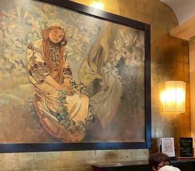 4.0オルセー美術館から徒歩5分、ロダン美術館から徒歩10分です。店内にはミュシャの絵が展示されたり、壁に描かれたりしていて楽しめます。店の外壁に各国語のメニューが貼...もっと見る