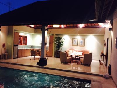 ヴィラ内で解放感を感じました。外のソファで飲んだお酒は最高でした。
