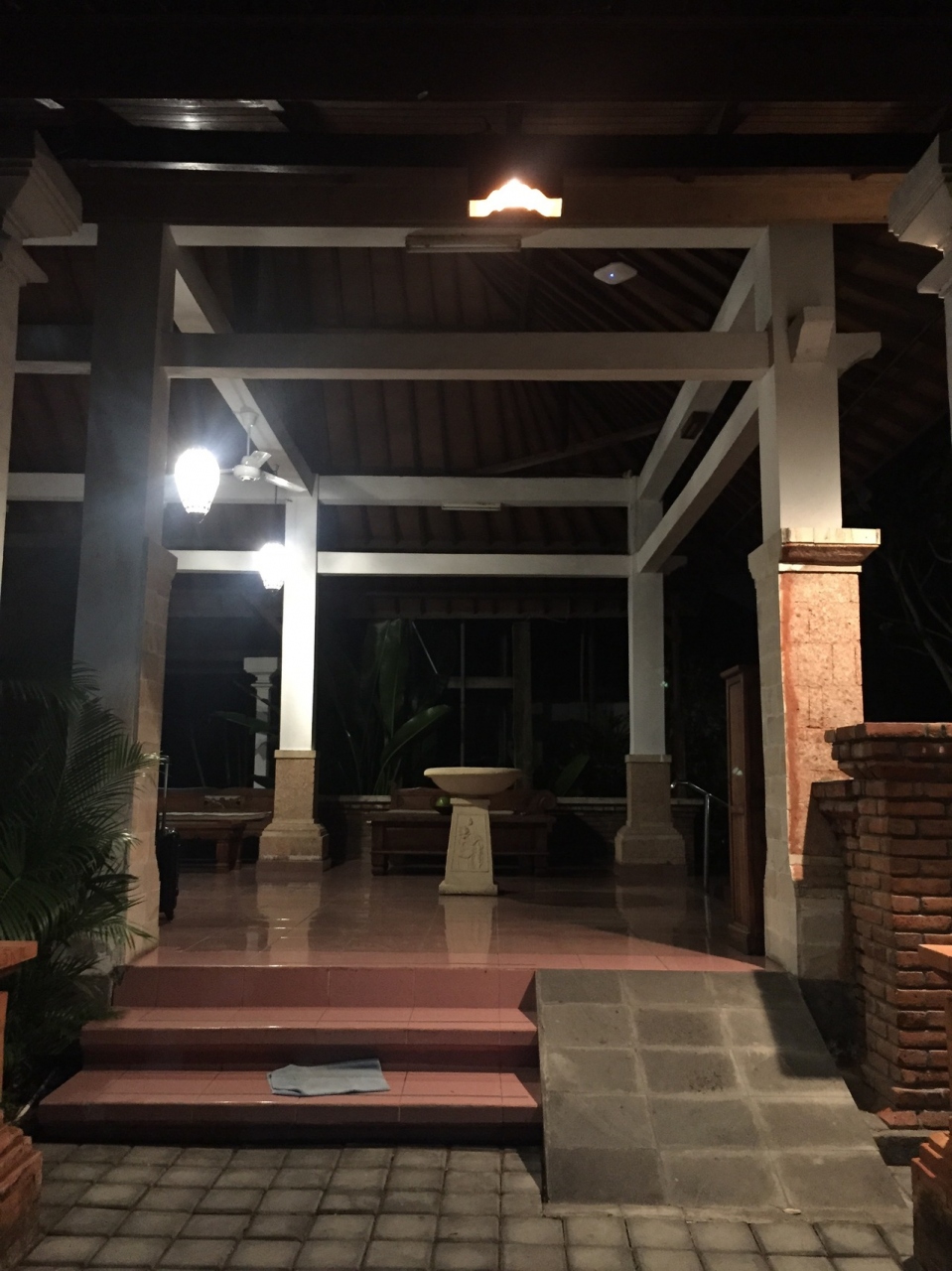 サヌールの賑やかな通りからから脇道に徒歩3分くらい入ったところにあるホテルです。
