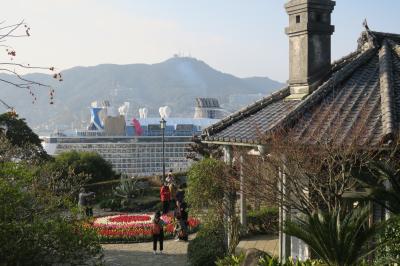 観光バスに乗ってお昼に向くものとして、岩崎本舗のながさき角煮饅頭をテイクアウト。蒸したてをかって、バスの中で頂く。少し甘い豚の角煮が挟んでである饅頭である。味もそれなりで、チョイと良い感じ。長崎の名物である。