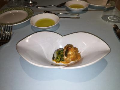 ホテルに紹介され出かけた。とてもおしゃれなお店で、カウンターとテーブル席である。