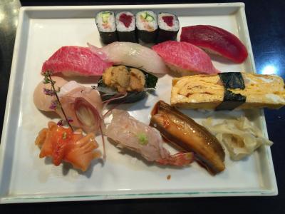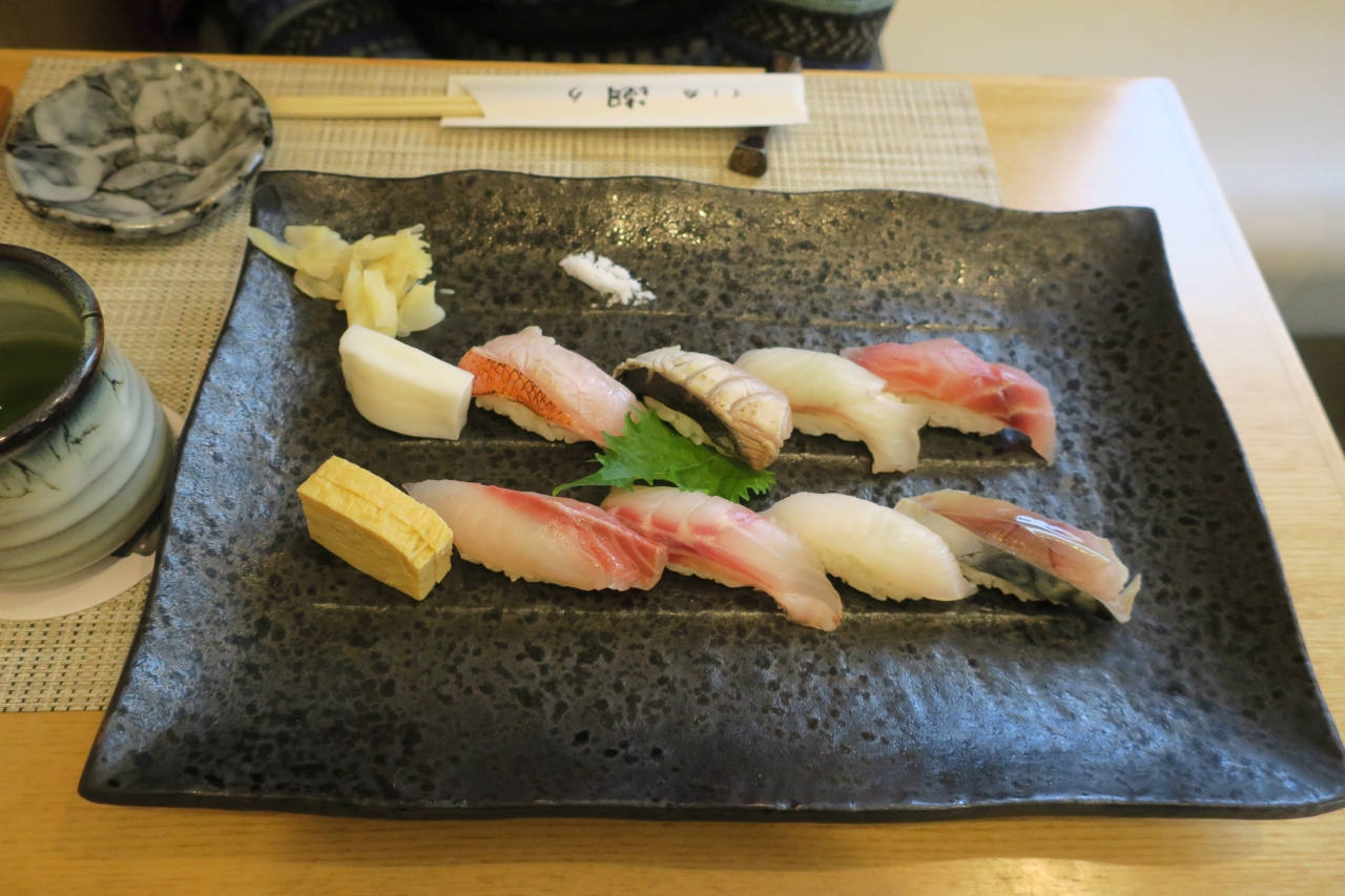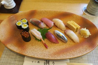 小田原でランチをするべく、市内の駐車場に車を止め、散策しながら、ガイドブックにあるすし屋を目指した。容易に見つかり、お店に入る。こざっぱりしたお店である。メニューを見て、地魚コースと、漁火コースを頼む。それぞれ八冠であり、おなかを満たしてくれた。デザートもサービスでついており、よかった。