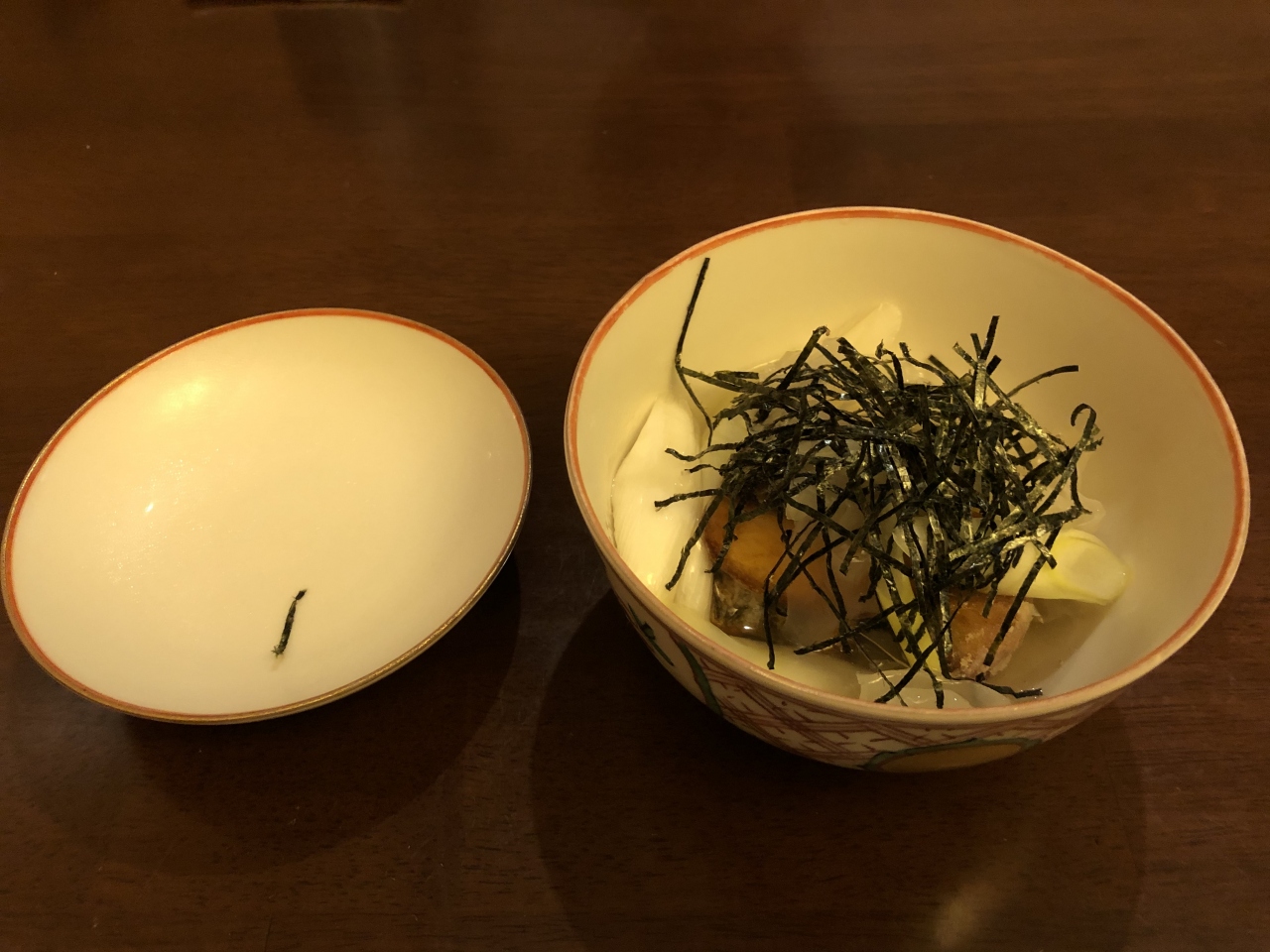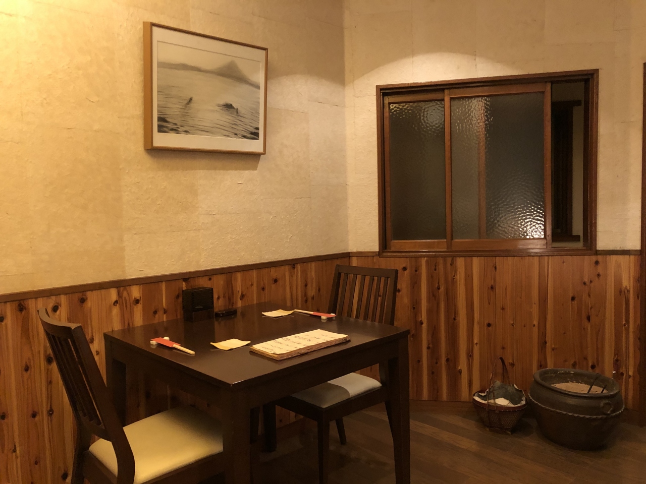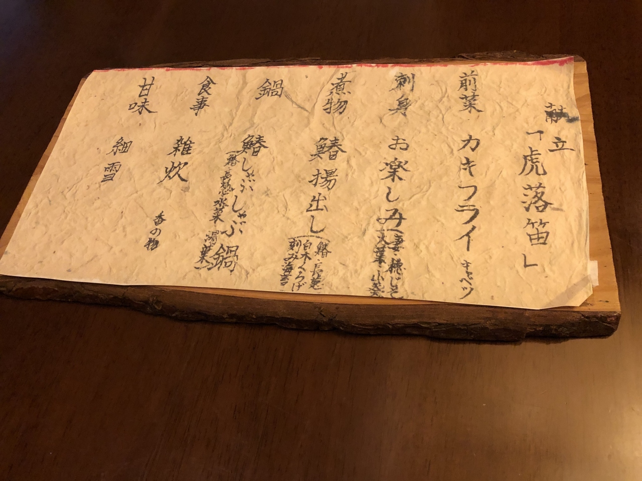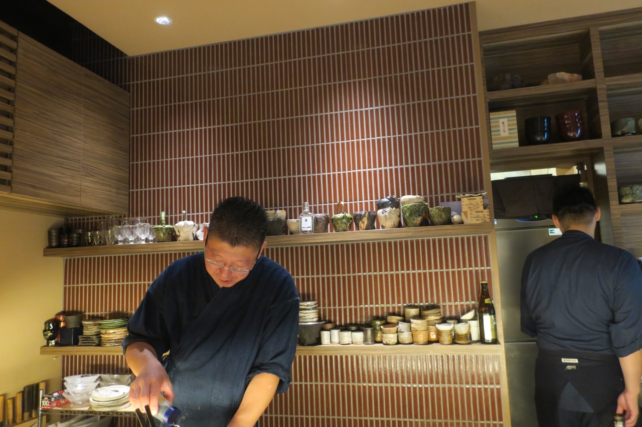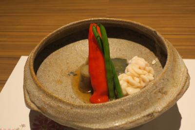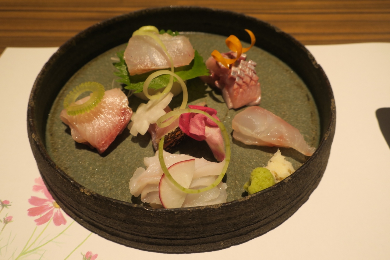 とても、幸せな気分になりました。親方のパーソナリティも、料理を引き立たせてくれました。人柄がにじみ出ていました。料理は、虎落笛(もがりぶえ)で、鰆のコース料理でした。前菜が、岡山瀬戸内海のカキフライとキャベツの千切り、刺身は、3点、煮物は、鰆を素揚げし、長ネギ、白キクラゲ、刻みのり。ふたを開けると海苔の香りがとても素晴らしいものでした。最後は、鰆のしゃぶしゃぶ。これが、新鮮なお魚と、おいしいだしのアンサンブルで、あっという間に食べてしまいました。押して雑炊で占めました。だんだん医が小さくなったのでしょう。満腹満腹です。デザートは、投入のアイスクリームに、粒あん、甘さ控えめで、とてもおいしかったです。またの訪問が楽しみです