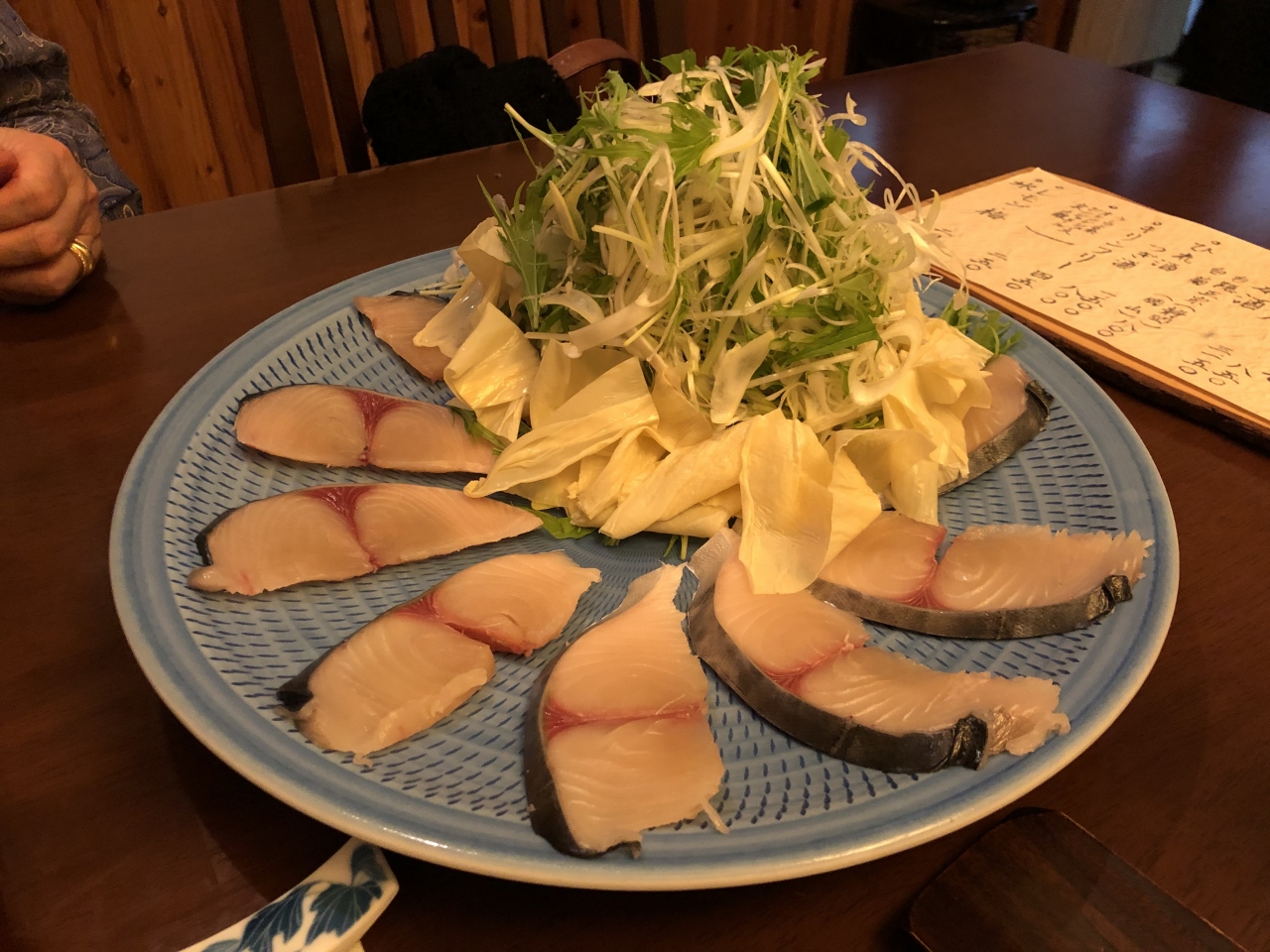 友人の勧めで、大観荘内にある寿司処花吹雪にお邪魔した。大きな数寄屋造りの旅館で、案内され、中庭を眺めて、本館にある寿司処へ。大変落ち着いた場所であり、大将のお人柄で、味を一層増殖してくれた。今日の地魚の刺身などを最初にいただき、握ってもらった。茶わん蒸しや、クエのカマ焼きなども賞味。また来たいお店である。
